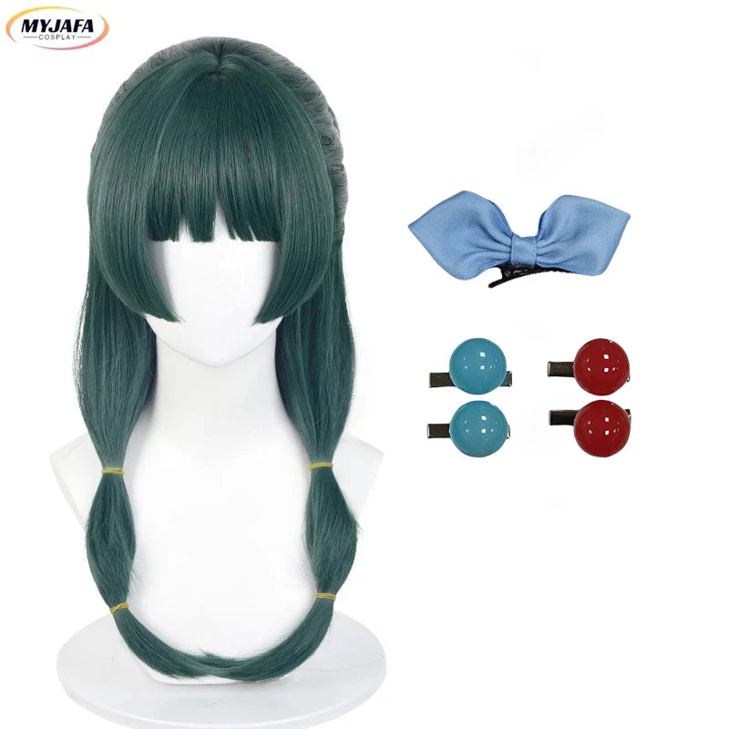 Anime Maomao Cosplay Wig Long Dark Green Scalp Wig Heat Resistant Synthetic Hair Party Unisex Wigs + Wig Cap